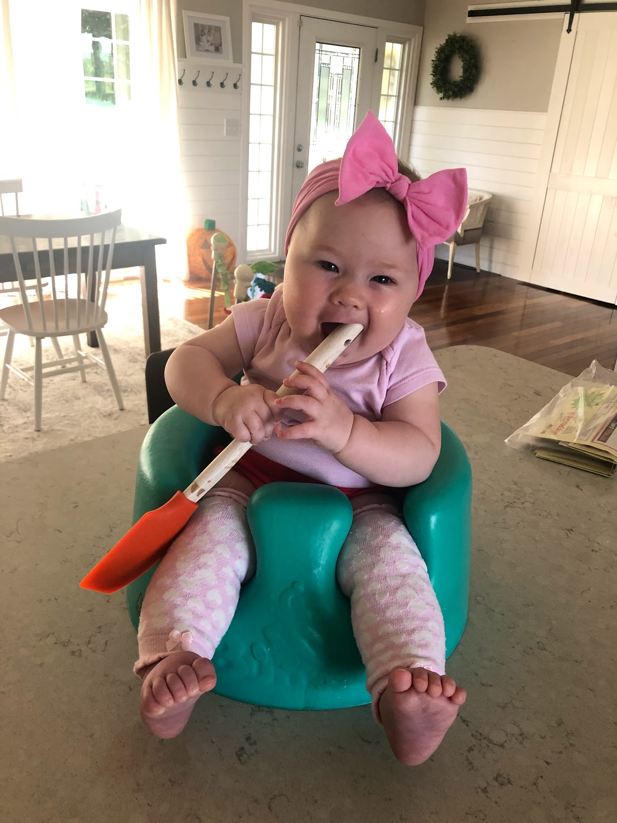 Our baby Jane was packing on the pounds and she was smiling up a storm! Don’t mind Jon and his shirtlessness – it was still hot outside! Bahaha! Sorry, Jon. 😉