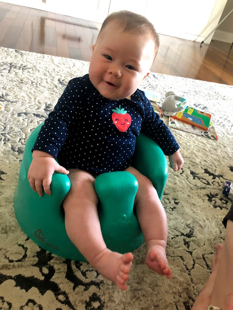 Sitting the Bumbo. Girlfriend’s thighs kept getting stuck. Haha!
