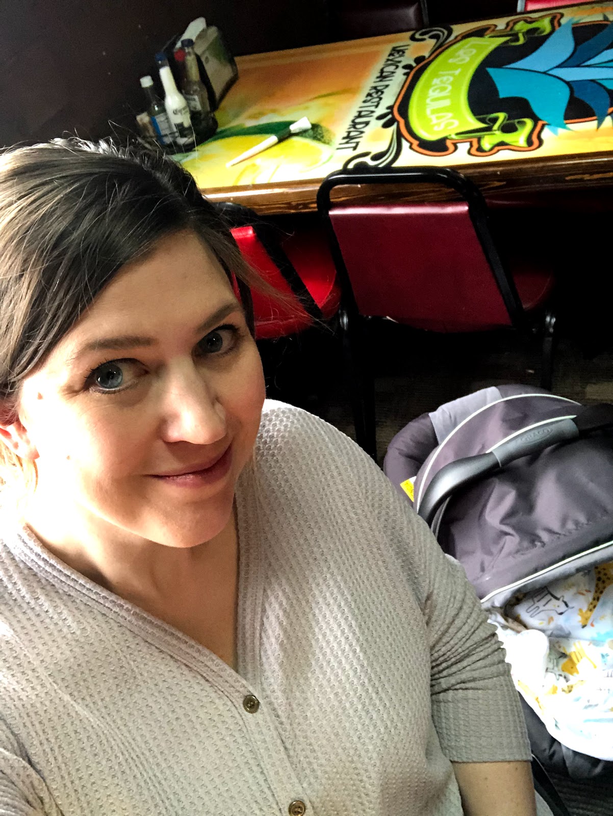 Jane’s first time out to dinner…and Mama stuffing her face…