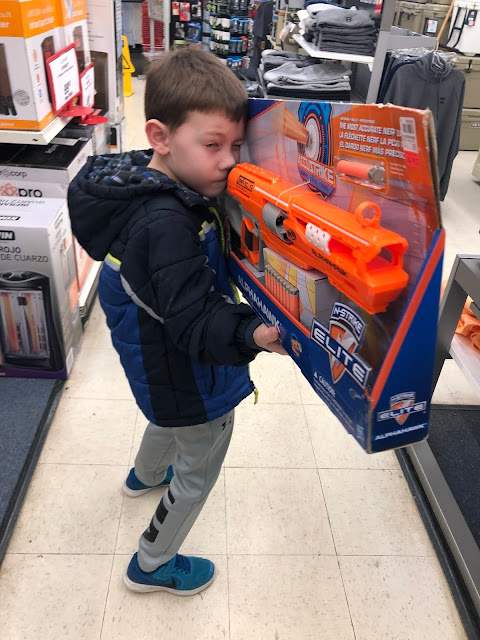 Henry and I headed out for a date of our own. He was incredibly silly the entire night. We went to look for new shoes and a new University of Michigan shirt for his upcoming Mommy/Son Night – no dice. Henry did, however, find a new Nerf Gun he liked… Oh boy…