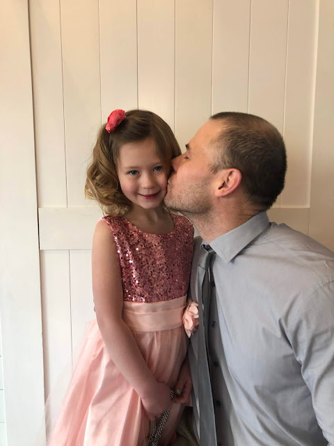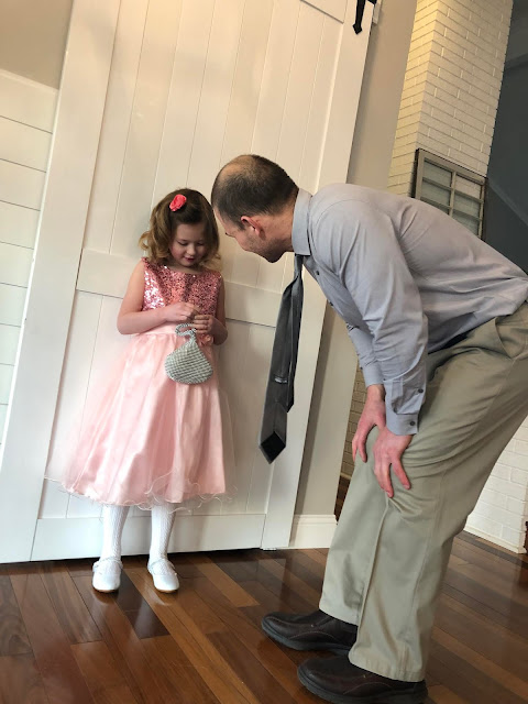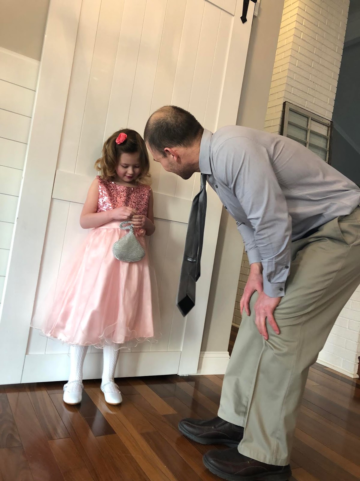 She woke up feeling a bit better and her fever seemed to be down. I had figured it had been 24 hours since her fever had started so we started to get ready for her first Daddy/Daughter Dance. She still didn’t seem herself, so we just took it one step at a time. She really wanted to go to dinner with Jon and to her first dance, but Jon and I had decided that if at any point she wanted to leave to just do so…