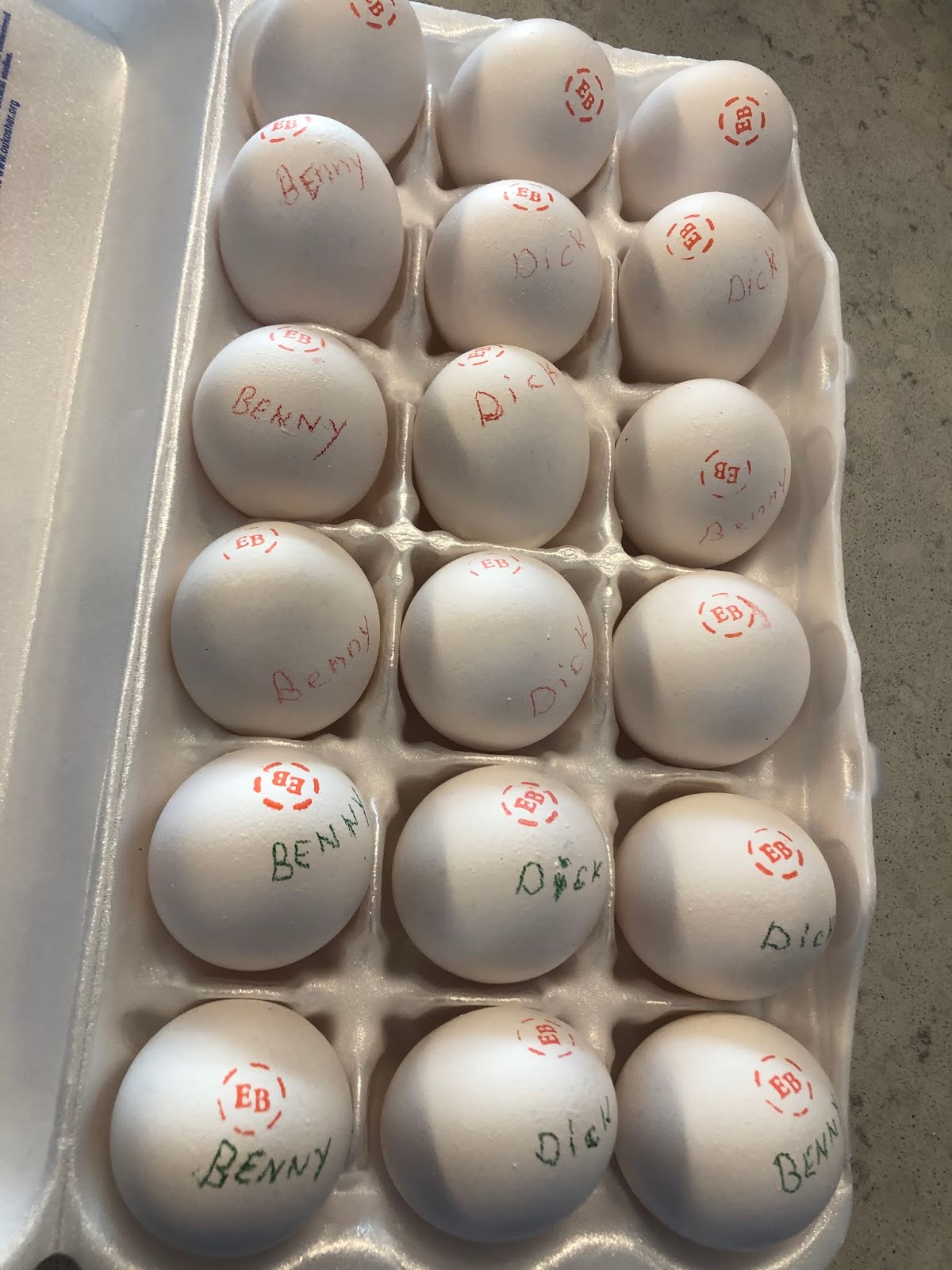 Once safely home, my FIL told us to look at our eggs. Jon had planned on making his parents eggs benedict for breakfast and since that didn’t happen, my FIL took matters into his own hands and made “Benny and Dick eggs.” Bahahaha!