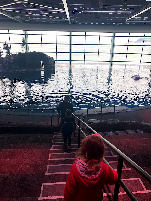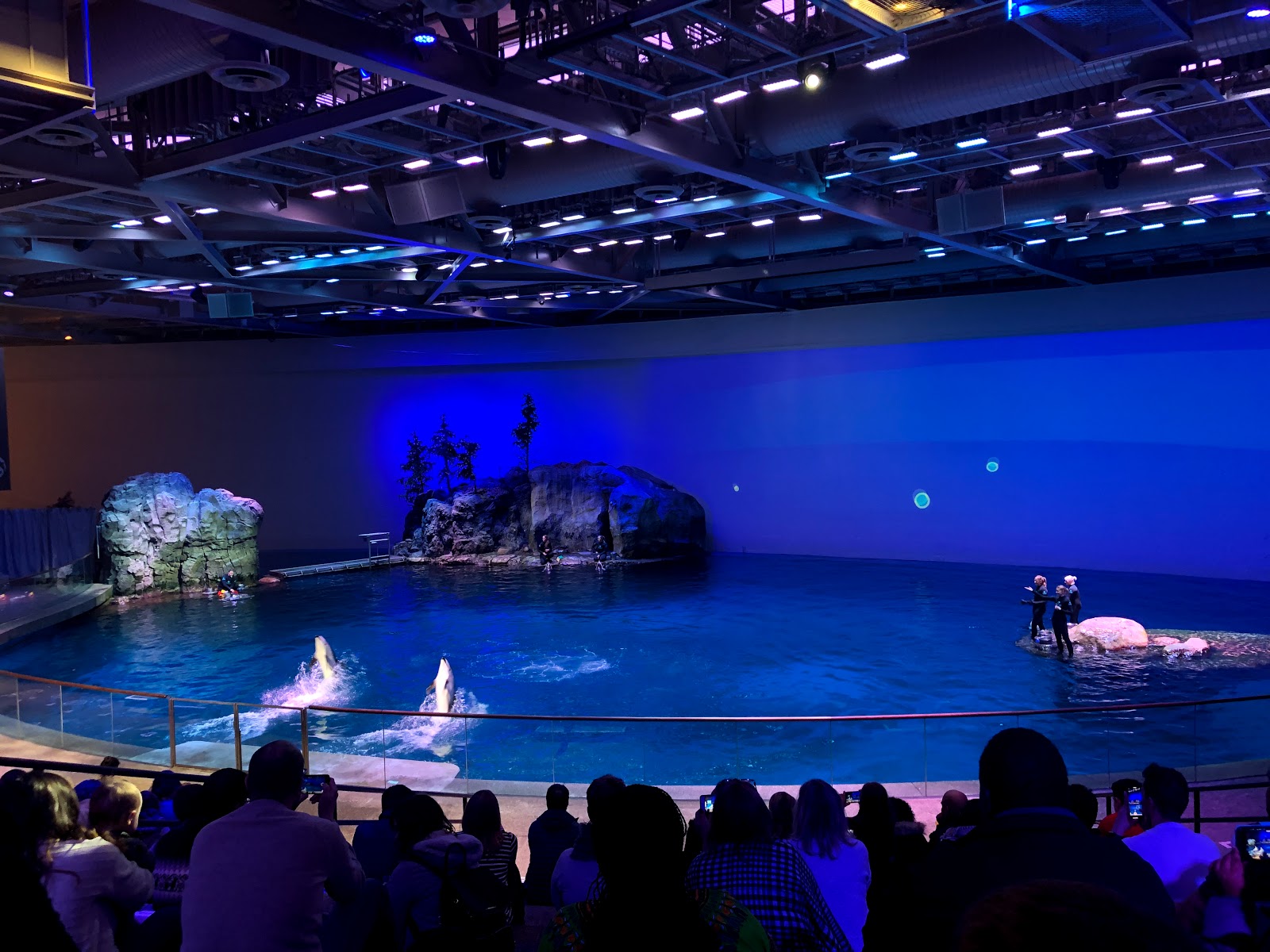 We ate lunch and watched a show. Beluga whales, dolphins, a sea lion and a penguin – we were most definitely entertained!