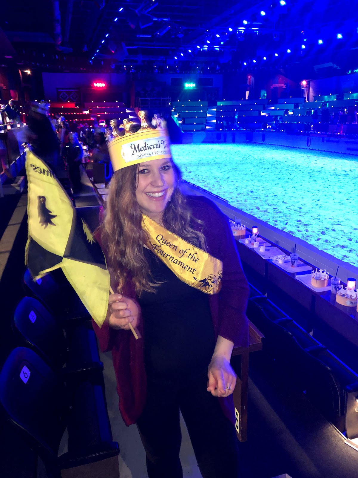 Oh my gosh – and the BEST part – I was named Queen of the Tournament by our knight for our yellow section!!!! He was handing out flowers to girls in our section throughout the show. At one point he said he’d be back to give me something. He and some other knights won one of the “contests” and were given sashes to hand out…but I had no idea what was happening when he came over with his jousting stick and told me to take a sash. He gave me a wink and rode away. You guys – YOU GUYS!!!! My life was complete. Jon thought it was the cutest/funniest thing! I probably mentioned it to Jon at least 75 times for the rest our trip AND I may have put on the crown and rode with the sash in the front seat while driving back to Michigan a couple days later. It was magical…perhaps equal to our wedding day and birth of our children… 😉 😉 😉