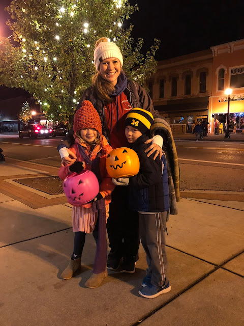 Later on Saturday evening we attended our local Halloween parade. Eliza was NOT a fan of this witch that popped out of a jack-in-the-box.