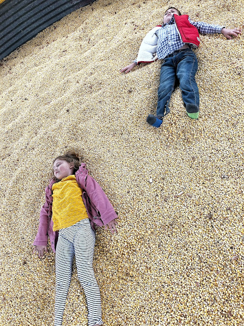 This was, hands down, THE most excited the kids had ever been to climb up the straw bales, go through the corn maze (although Henry has ALWAYS enjoyed corn mazes – this time he was just a little more enthusiastic), count pumpkins on our hayride and to play in all of that corn!