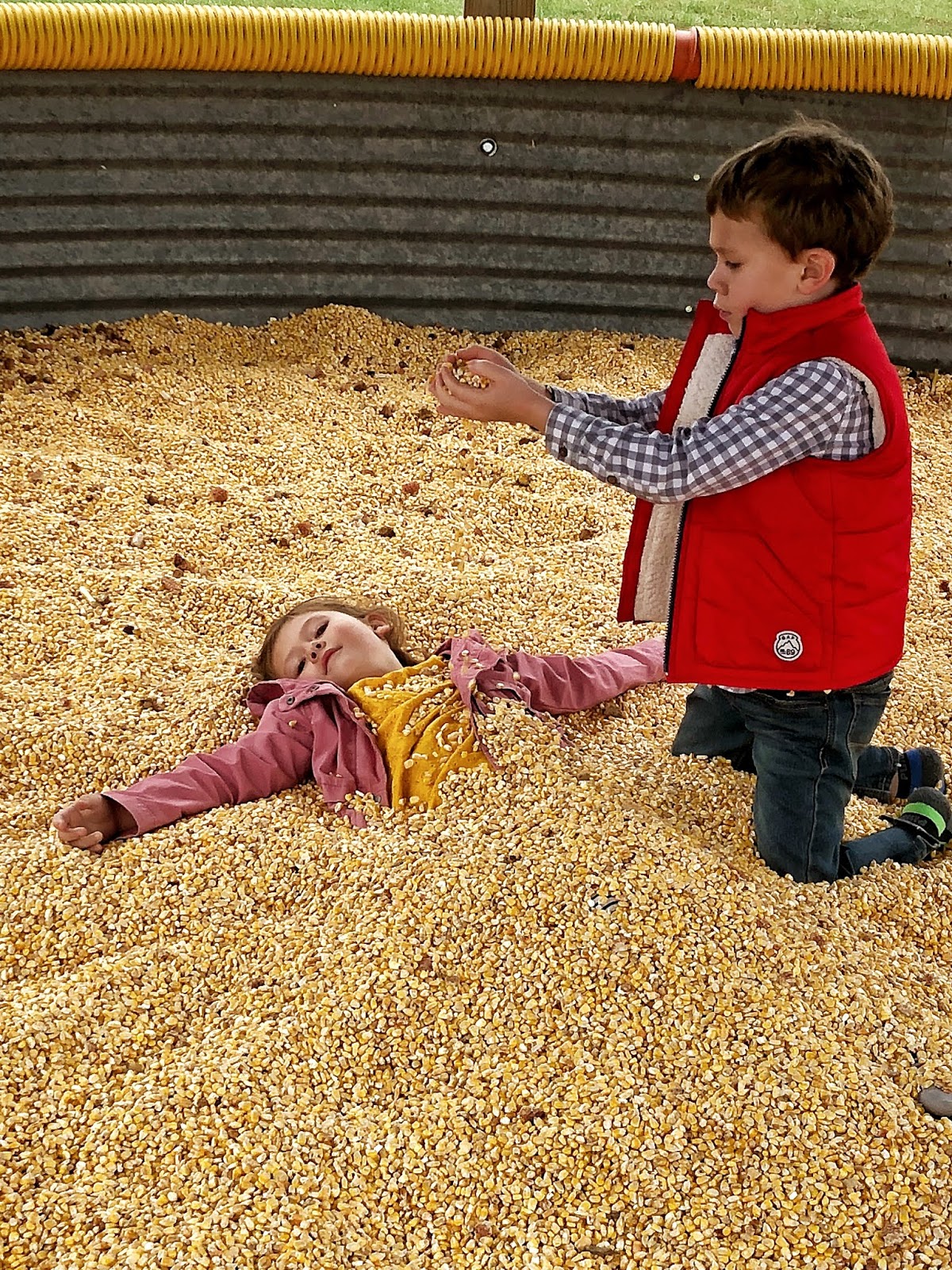 This looks like some sort of spiritual thing! LOL! It cracks me up! But I can assure you that Eliza had asked to be buried in the corn and Henry was taking it very seriously. Hahaha!