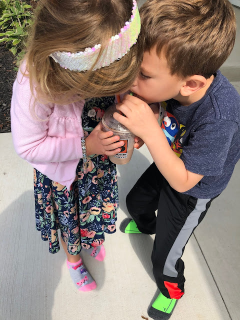 Henry asked me when the neighbor boys would be home at least 376 times and Eliza proceeded to recite the Pledge of Allegiance 534 times. I forced the children into the car to head to a coffee shop and I treated myself to a hot caramel apple cider and bagel with cream cheese. Sweets and carbs make everything better. 😉 😉 😉 In all honestly, the kids were wonderful. I just needed a second. You get me?