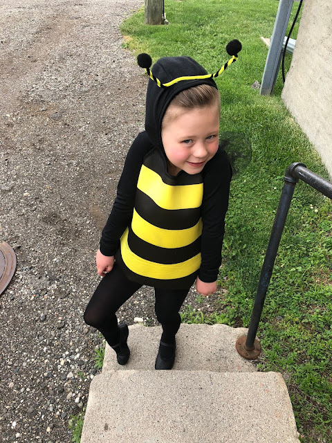 You guys, this entire get-up cracks us up! Eliza rocked this costume and didn’t seem to mind at all that the other little dancers were sporting sweet little bumble wings, a cute leotard and a pretty skirt. Meanwhile Eliza and a little boy named, Jack, proudly pranced around the stage with crooked antennae and yellow and black striped bubble tops.