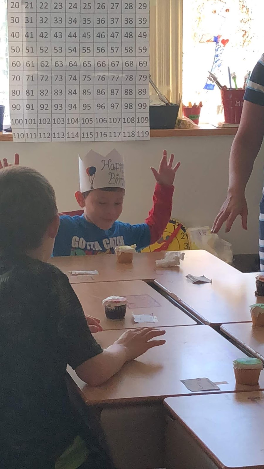 Henry and his buddy, Redmond, helped pass out cupcakes to some of their favorite teachers…