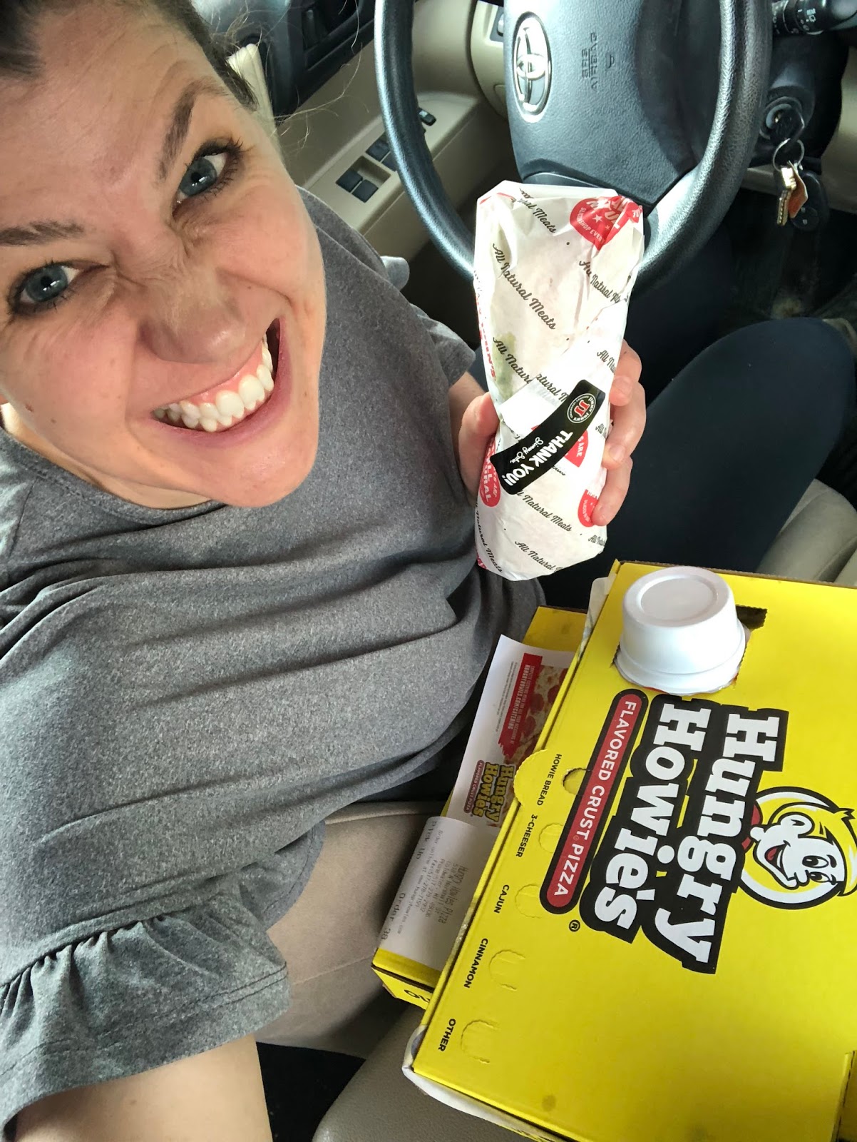 Henry’s school collaborates with Hungy Howie’s (a pizza place) once every month and 10% of all the proceeds go toward his school. Our days have been busy, so I was pumped to eat out in the middle of the week, something we rarely ever do. I decided to be WILD and get myself Jimmy John’s, too!