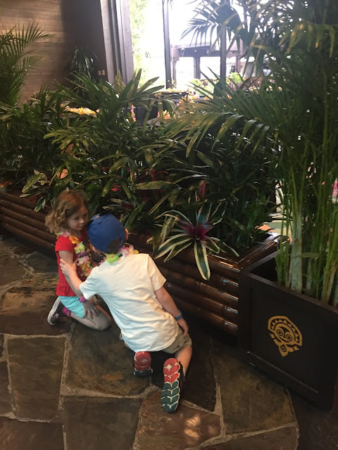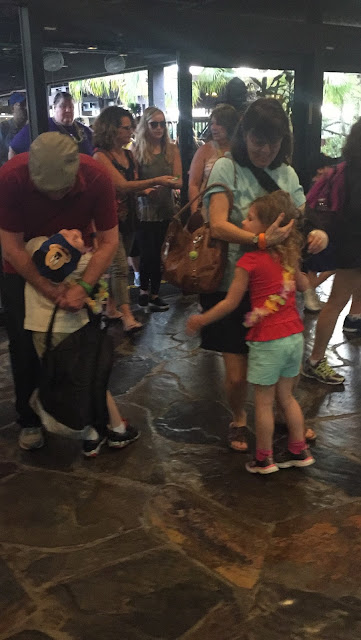 Surprise! My in-laws, George and Terri, were meeting up with us for dinner. I made reservations at Ohana at the Polynesian and told them to meet us there. The kids were extremely excited to surprise them!
