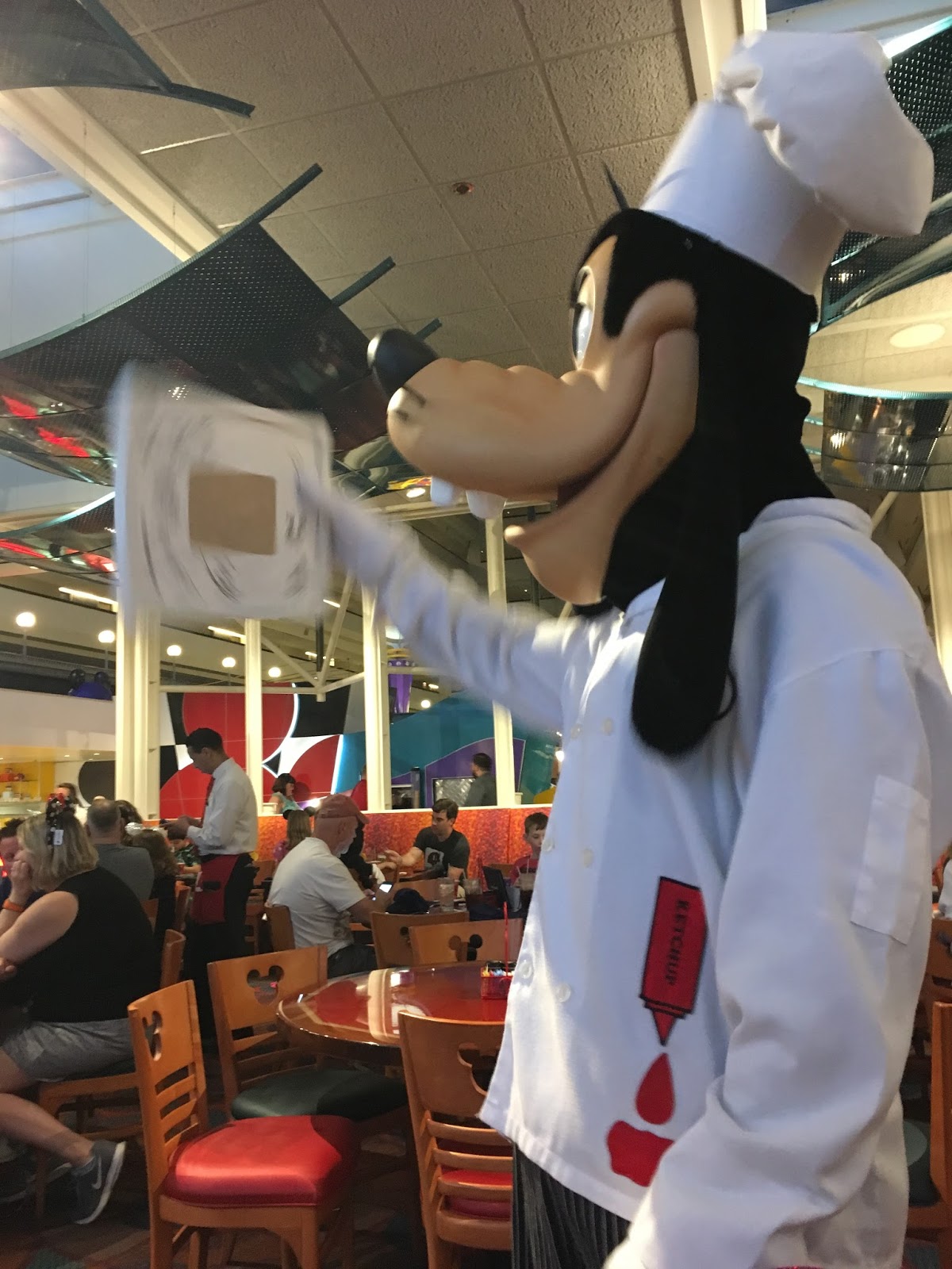 Oh. My. Gosh….the kids loved, loved, looooved this place, characters and all! It was amazing. Pluto was great, Mickey was in charge, Minnie was loving on Mickey and kissed his autograph, Donald was silly and Goofy was, well, GOOFY!