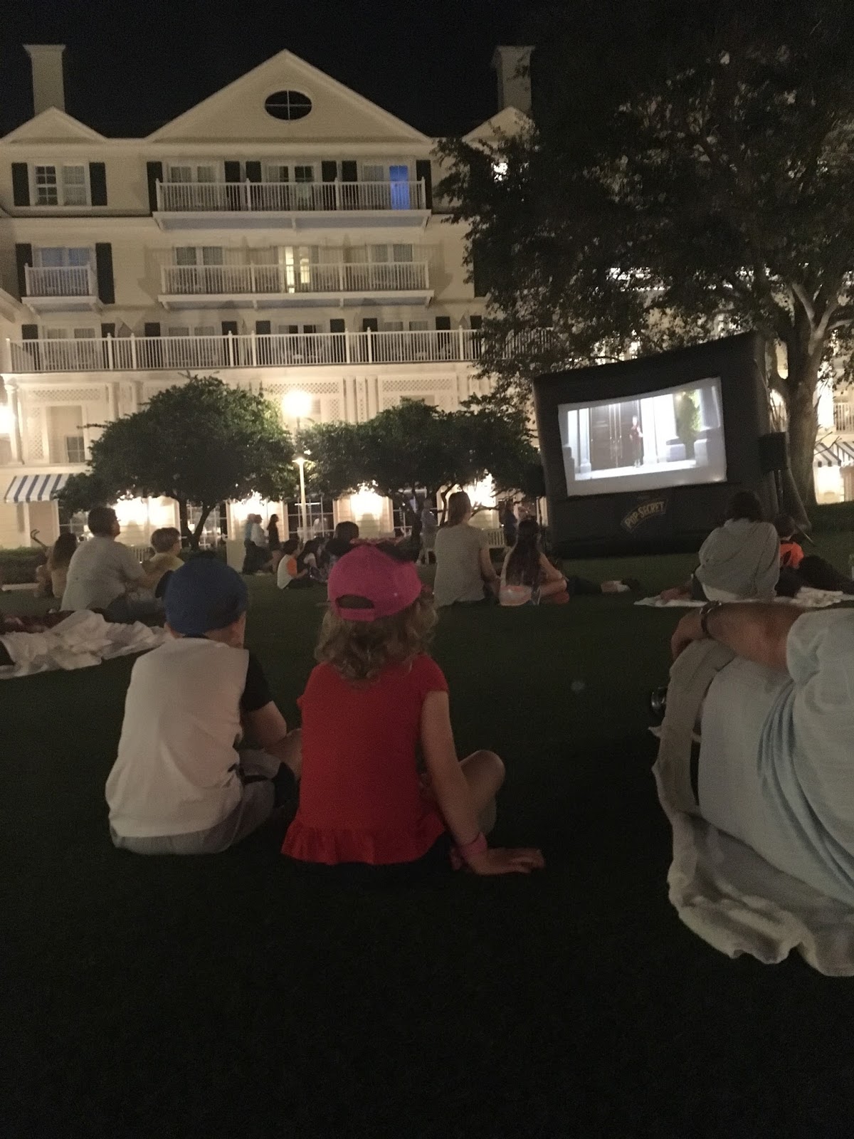 After the show, we walked the five minutes back to our resort and the kids sat for a bit to take in an outdoor movie.