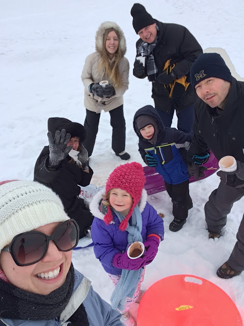 It also just so happened that my side of the family (my mom, dad and niece/sister) came over last weekend and we went sledding! I haven’t gone sledding with my mom and dad since I was a little girl – it was so much fun!