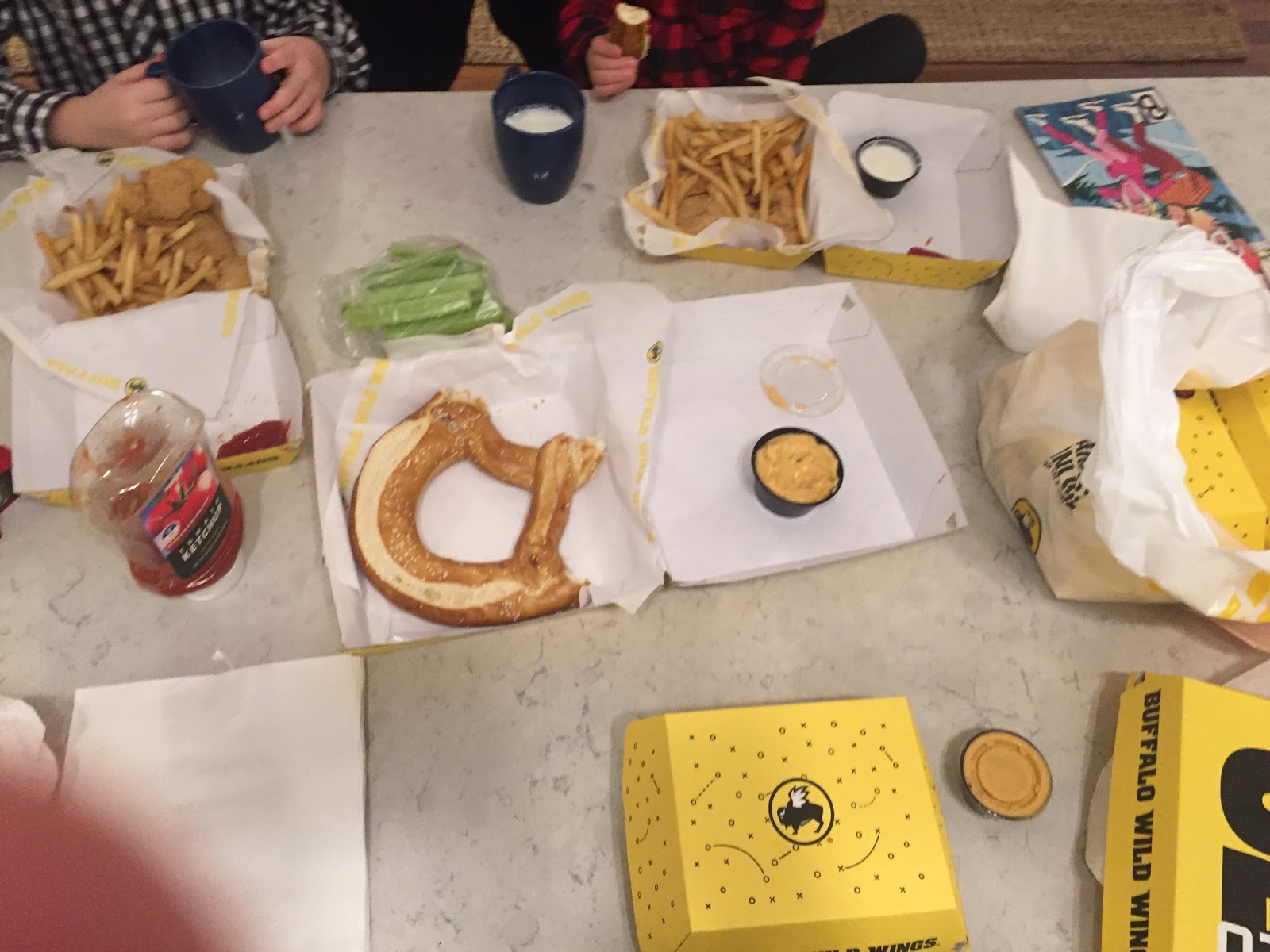 We ate a typical Christmas meal of Buffalo Wild Wings for dinner… 😉
