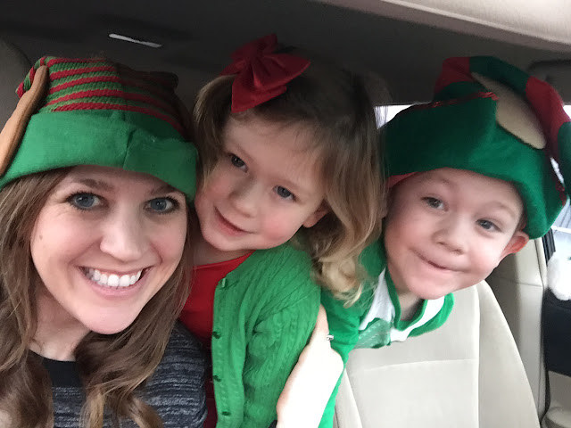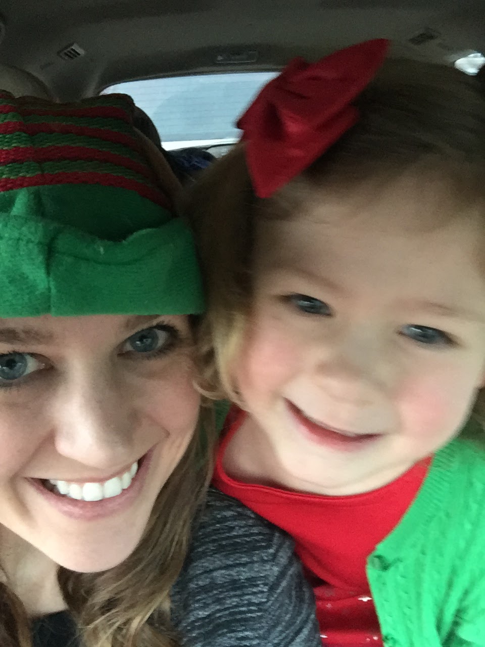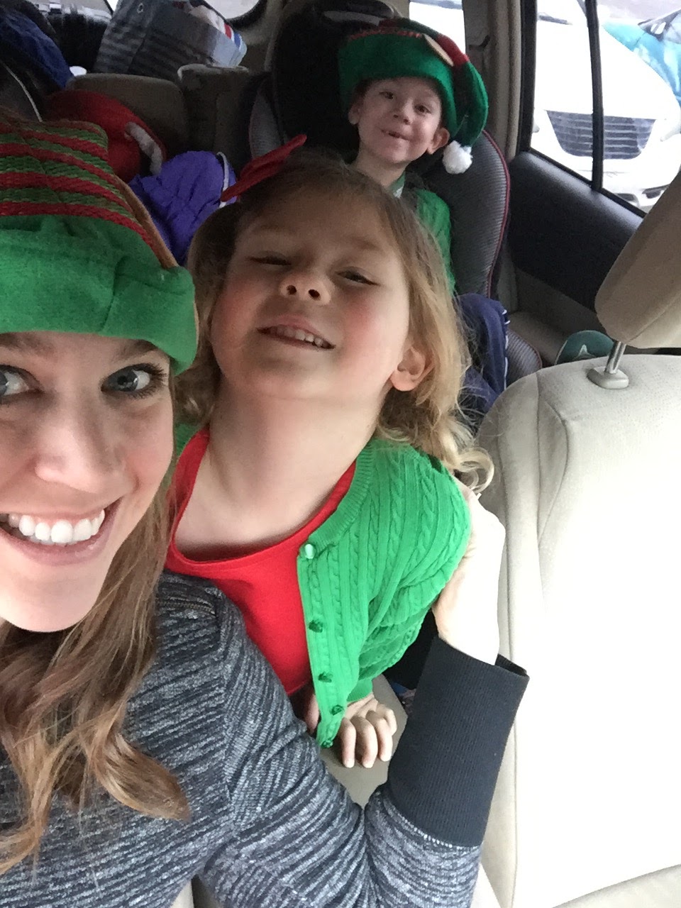 We left to go to my parent’s almost immediately after Eliza’s school party. Jon ran into the local grocery store and these cute little elves and I took some “elfies!” Ha!