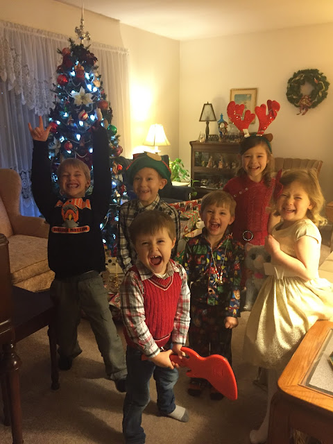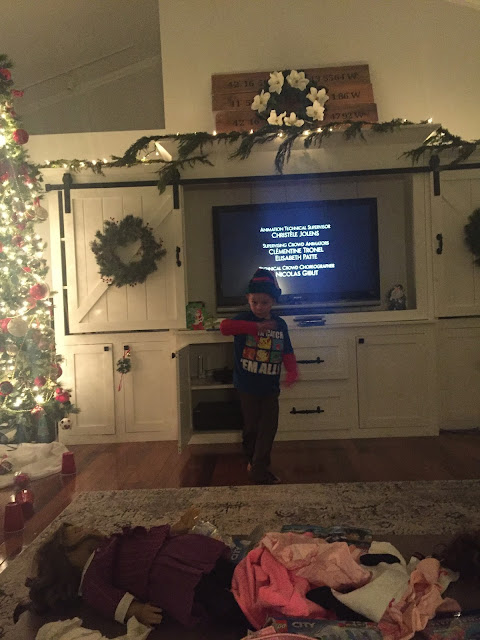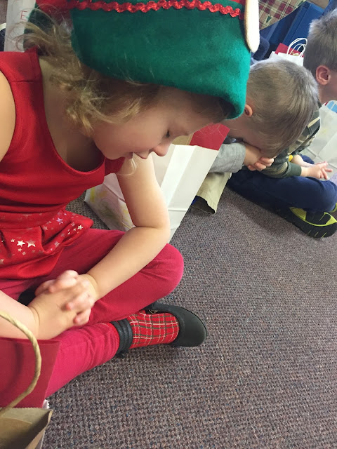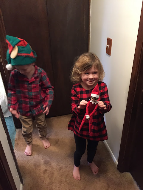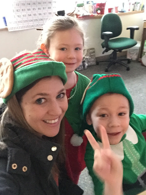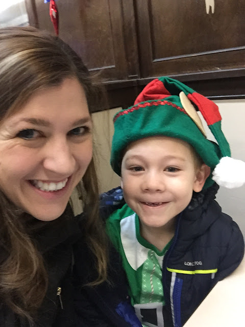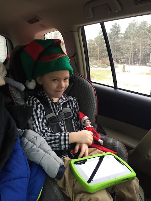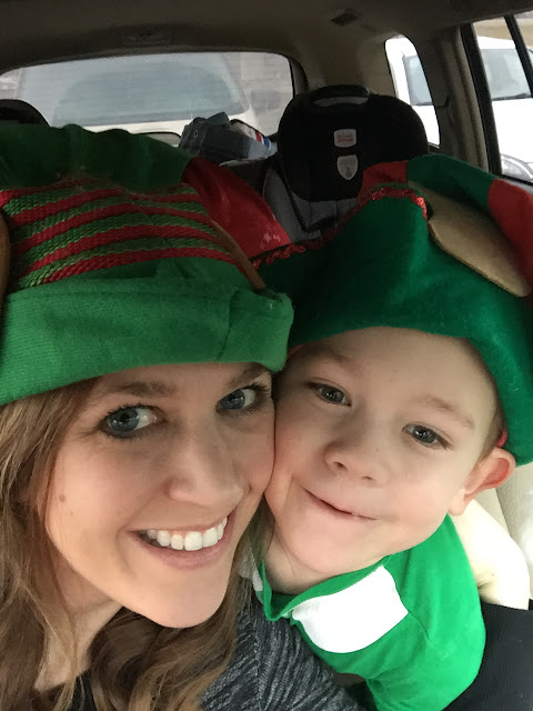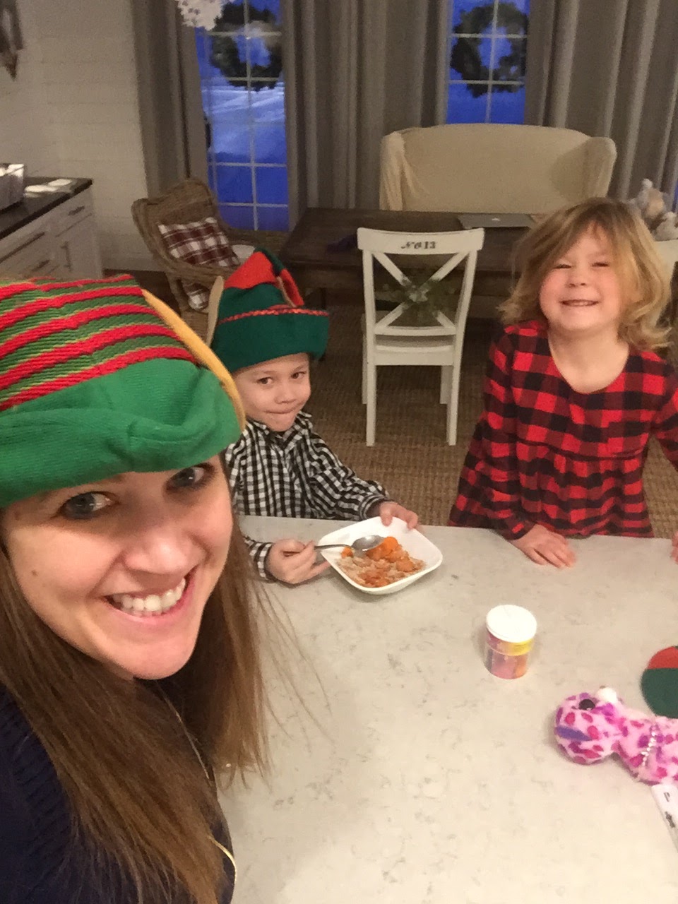 We left to go to my parent’s almost immediately after Eliza’s school party. Jon ran into the local grocery store and these cute little elves and I took some “elfies!” Ha!