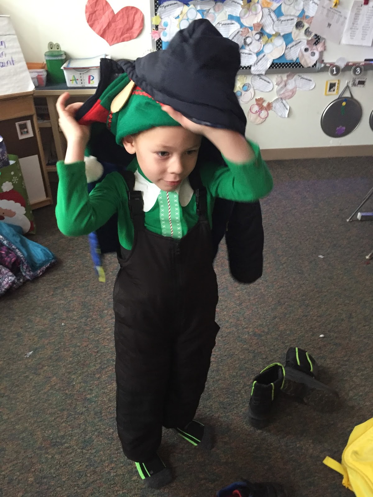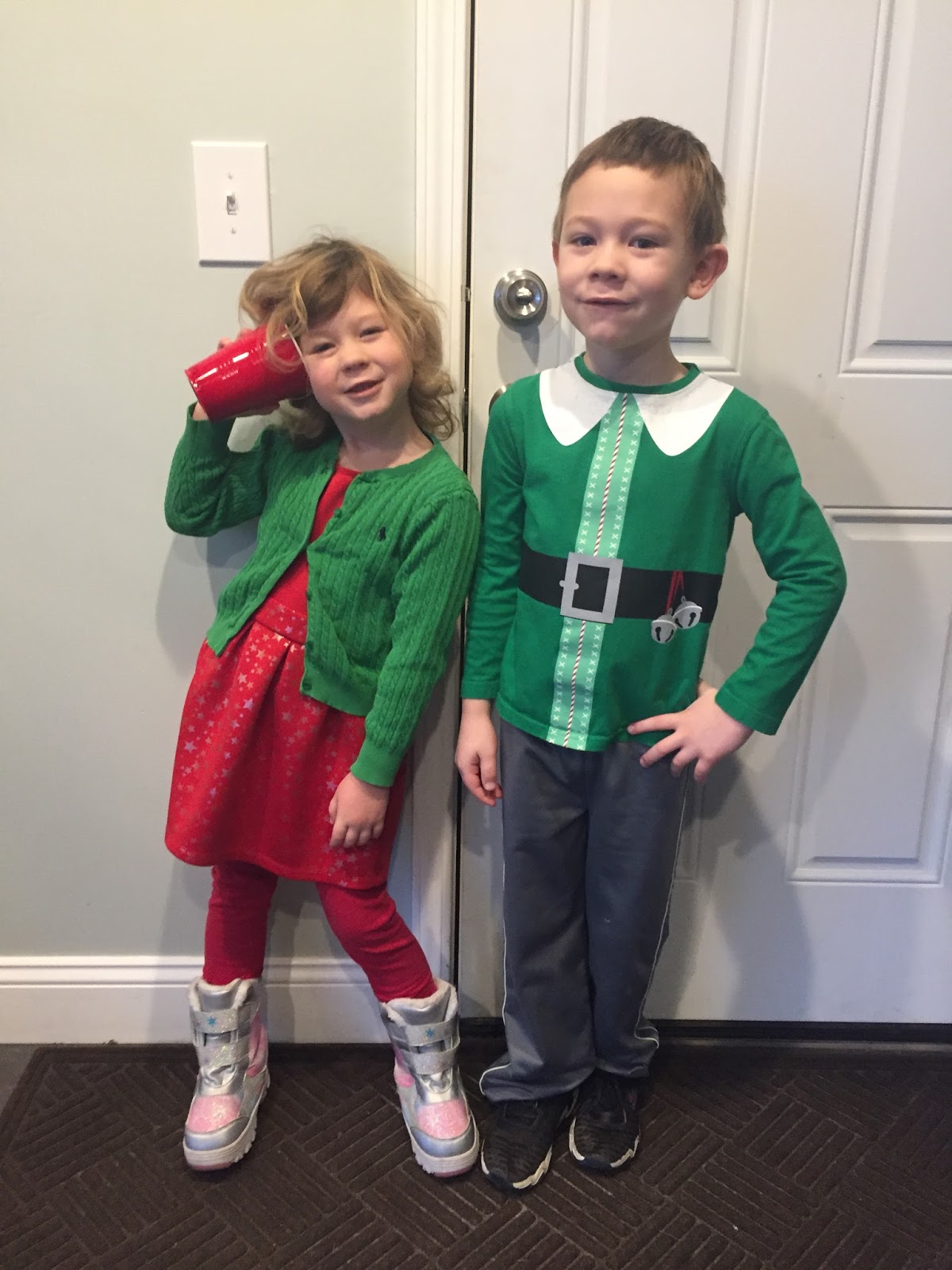 Henry and Eliza got all dressed up in their green and red for Henry’s class Christmas party.
