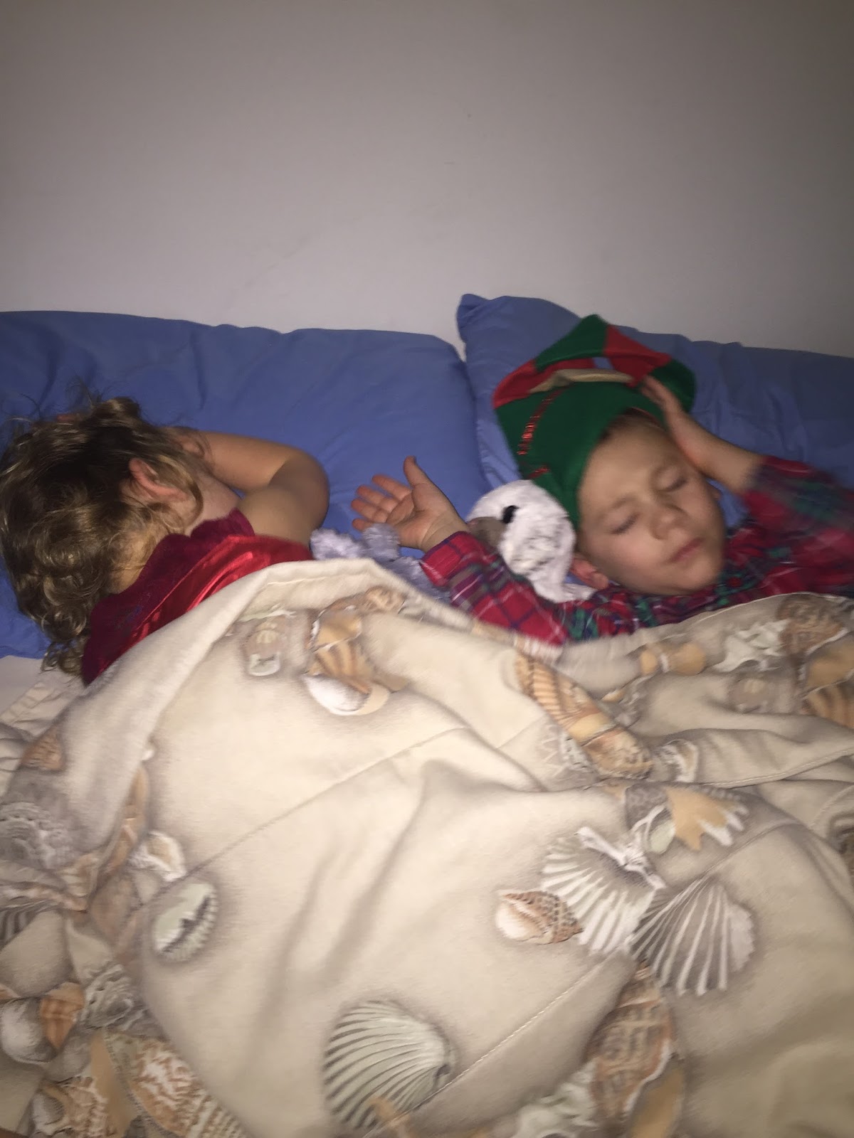 The kids slept, while Elmer – only feet away – continued to decorate his tree.