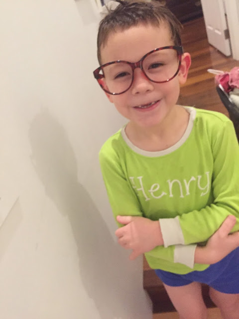 Henry found the glasses that I wore to the holiday party. Um…hello, cuteness!
