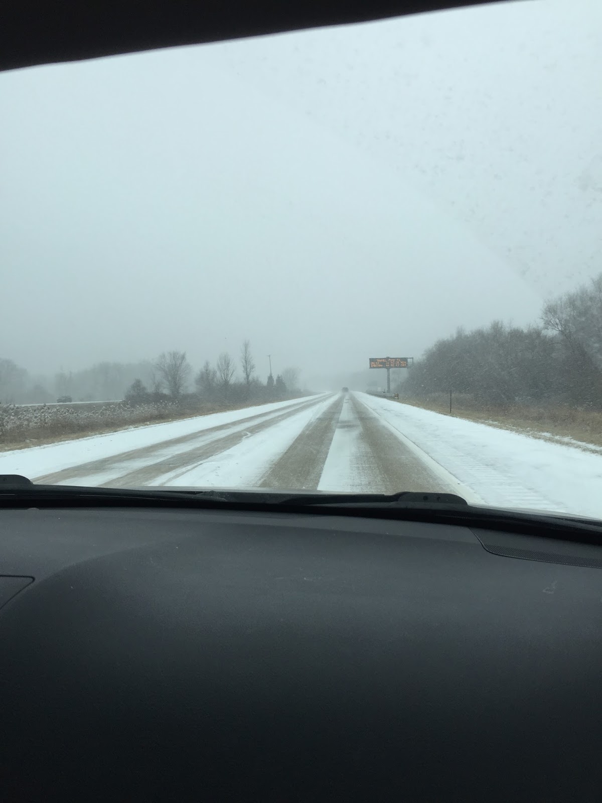 The roads became nasty. I knew it was supposed to start to snow where we lived, but I thought it was going to be later in the evening. We saw a car flipped upside down at one point. It was really terrible. We basically went 40 mph the remainder of the time on the expressway.