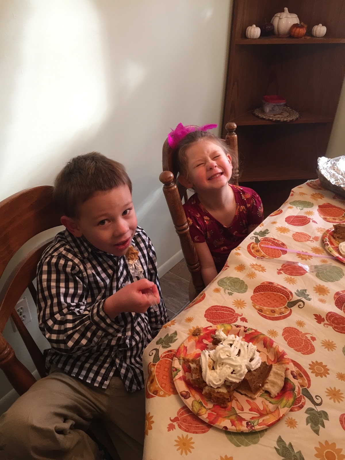 Henry didn’t eat a lot at dinner, but once pumpkin pie and pumpkin rolls were offered he managed to sit right down and get to work. He also took it upon himself to add the whipped cream…