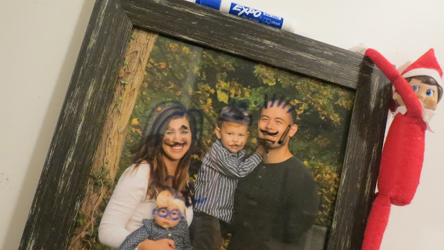 Oh my gosh – I almost forgot about this one! Elmer somehow got his hands on a dry erase marker and drew funny faces on an old family photo.