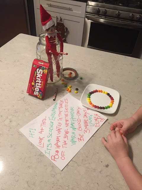 He’s the full package! Look how he conducted this Elf on the Shelf Skittle experiment.