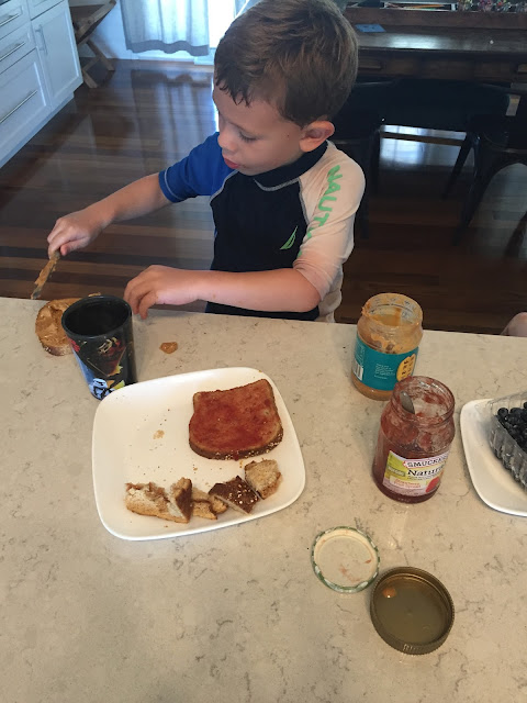 In the midst of the heat wave, Henry made his first peanut butter and jelly sandwich…
