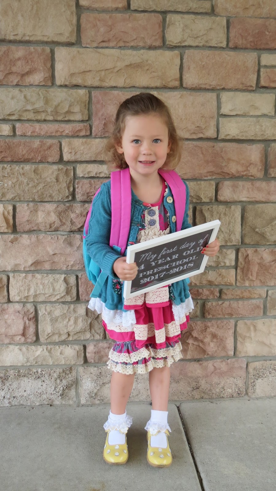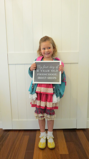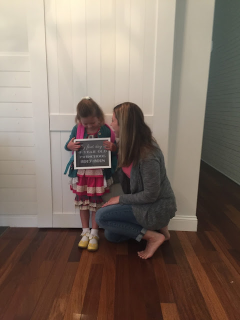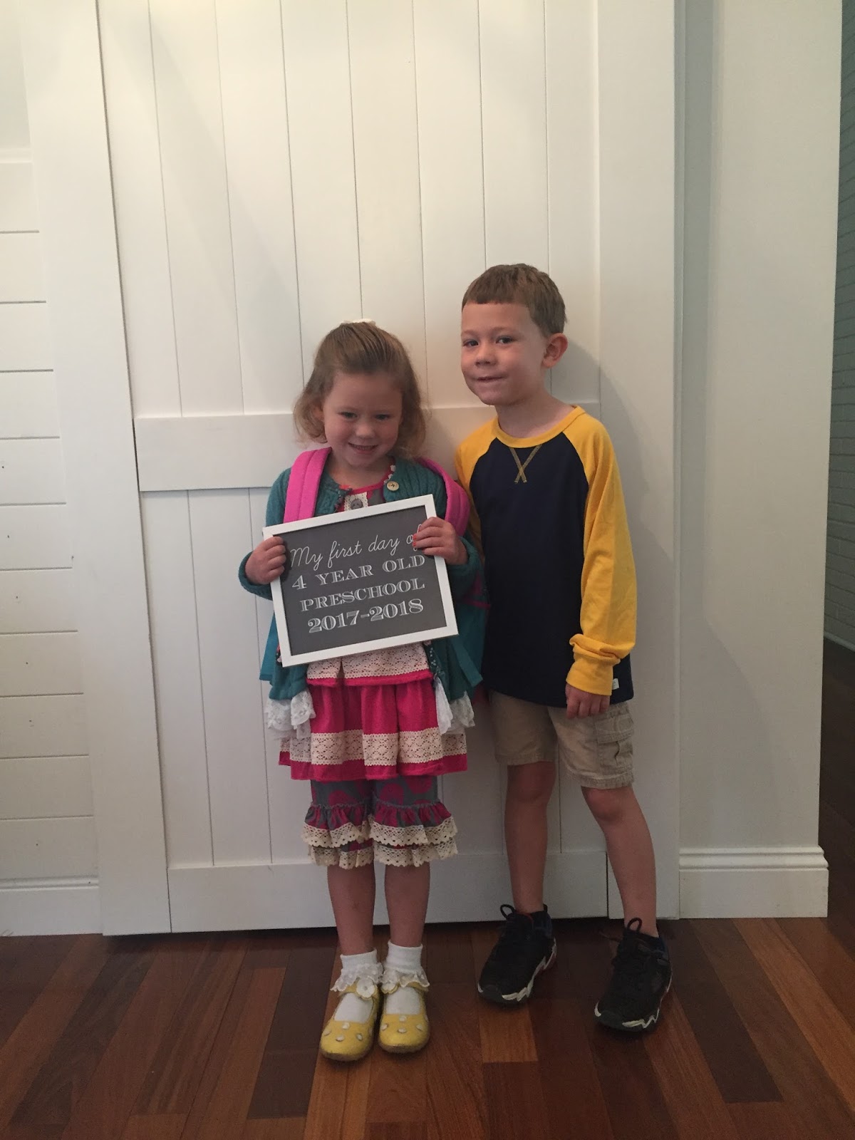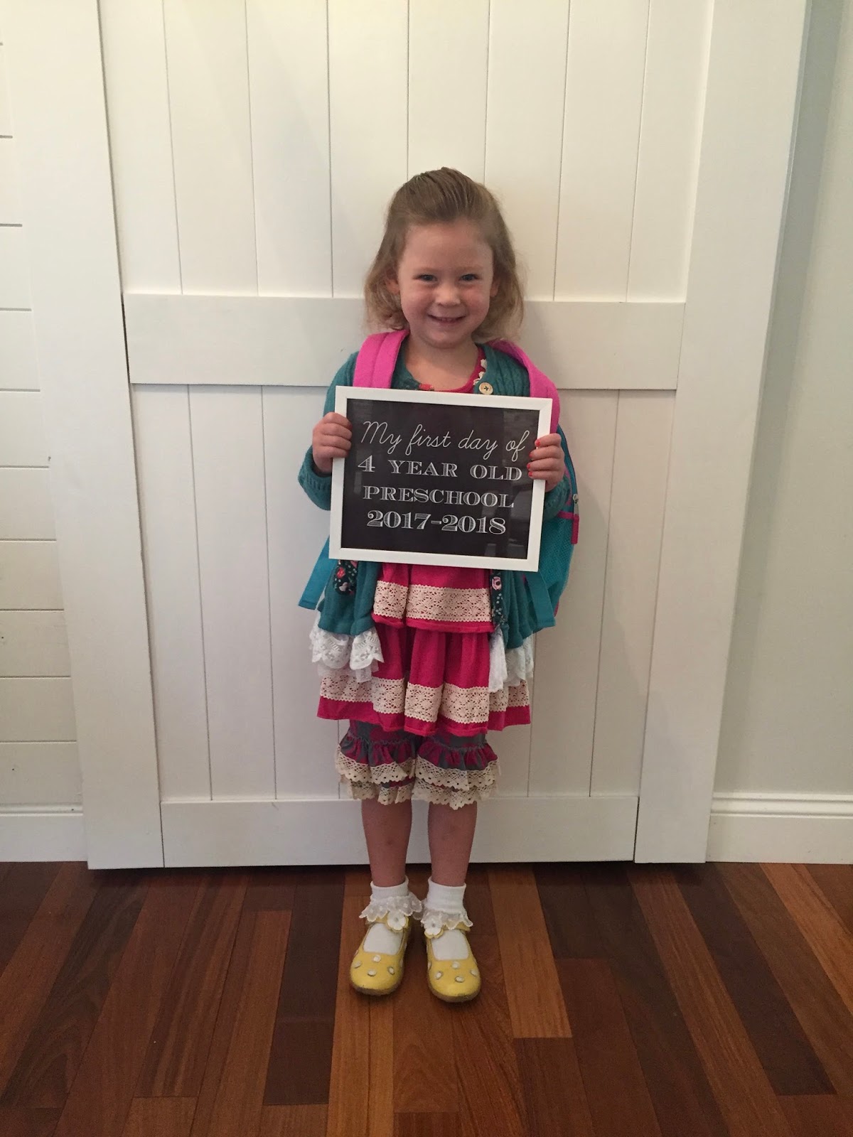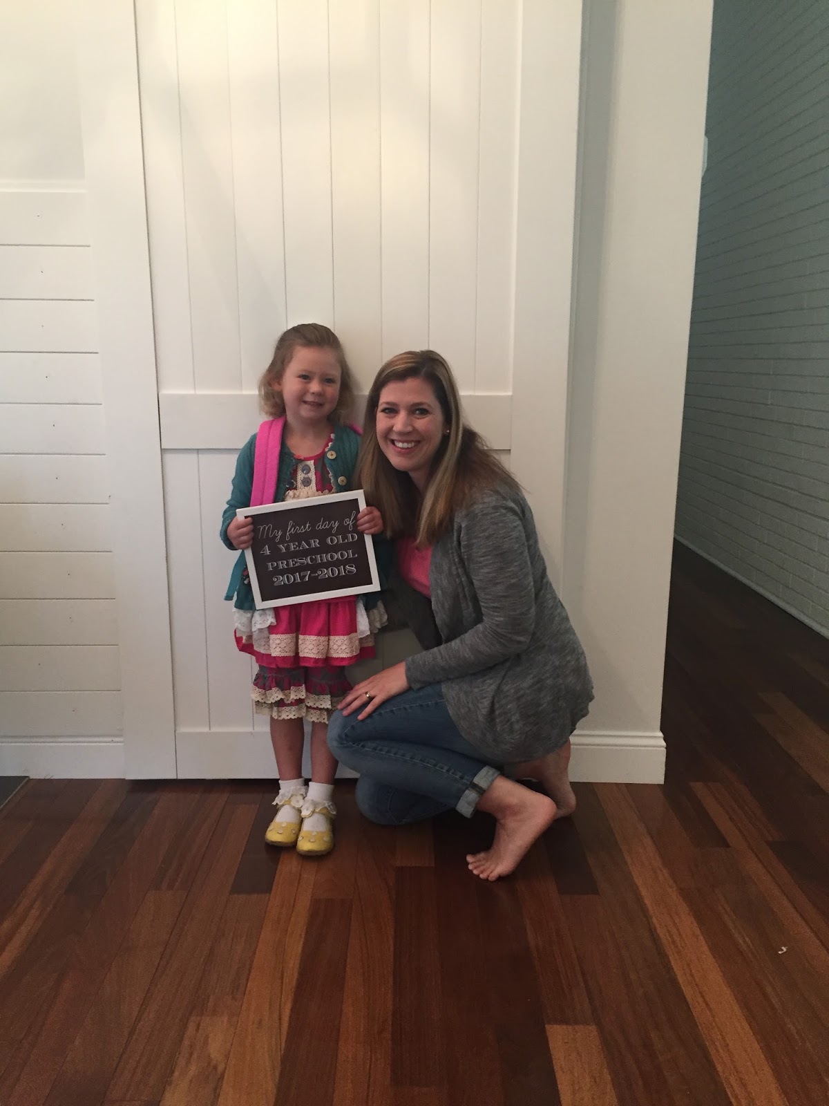 Okay, so the other day I shared with you guys Henry’s first day of first grade and now I’m back to share with you Eliza’s first day of 4 year old preschool.