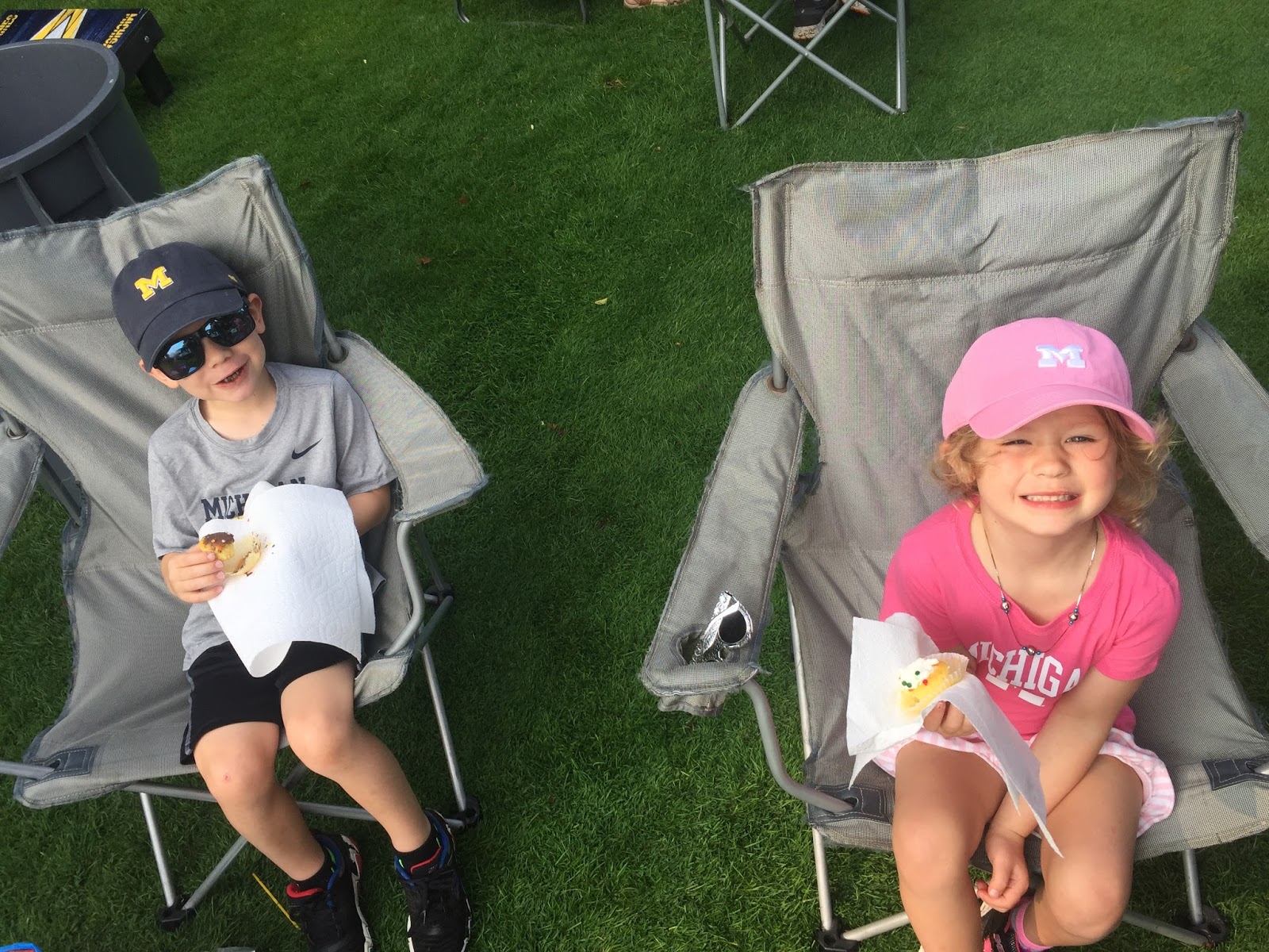 I’d say that 50% of the time that Jon and I attend a Michigan game we tailgate on the golf course across the street from The Big House. Although this time around our tailgating consisted of hanging out with our favorite little people, drinking juice boxes and eating cupcakes and doughnuts!