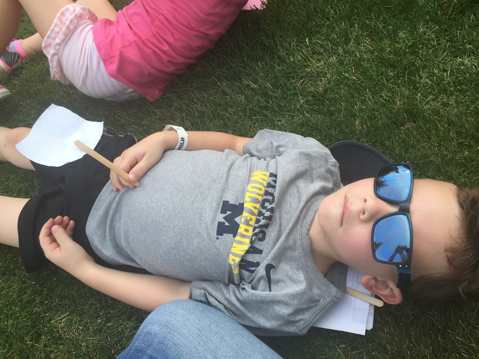 We took a break and headed out of the stadium for the kiddos to stretch their legs and to purchase some much needed beverages. These kids had been party animals all morning with all that sugar. I think this was them crashing…