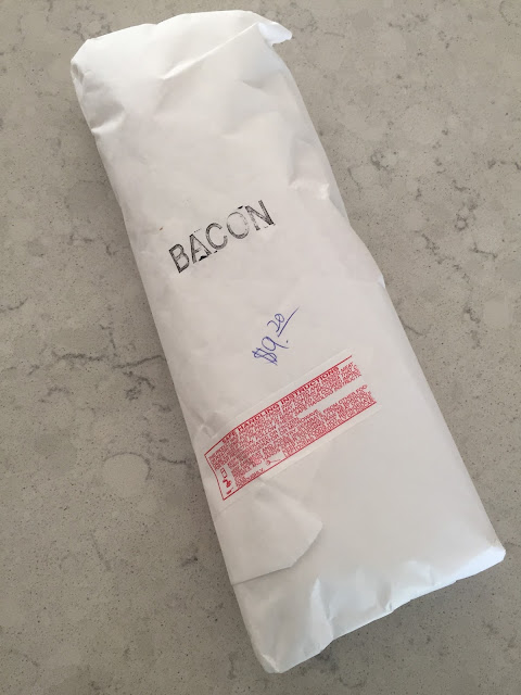 Jon’s parent’s came over for a lake day, so the kids and I headed a couple towns over to pick up some dinner essentials from an amazing and unique little meat market. I felt like I was living back in the 1950’s. The environment, the uniforms, the way they managed the store. You guys, it was a serious time-warp. Oh and I absolutely loved how they wrapped and stamped this bacon.