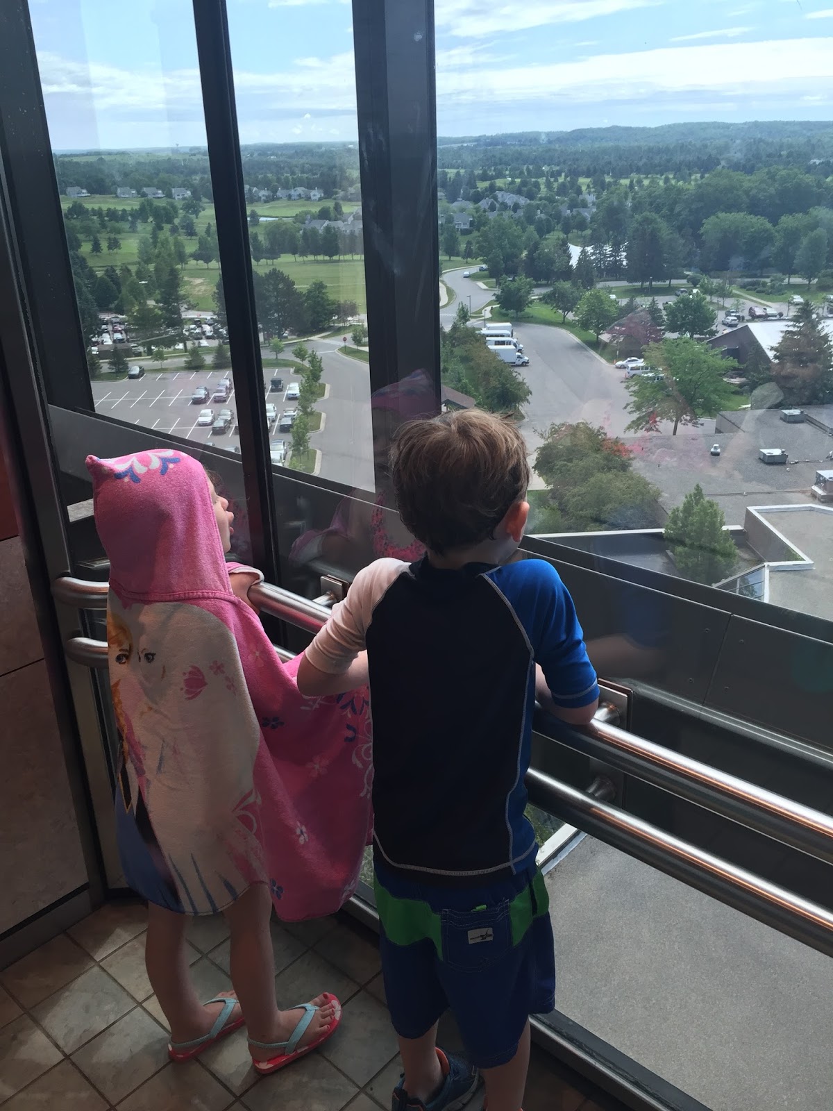 Anyhoo, after swimming, our room wasn’t quite finished being turned down, so we went for a bunch of elevator rides in order to kill some time. We figured why not go to the top and check out the 17th floor!
