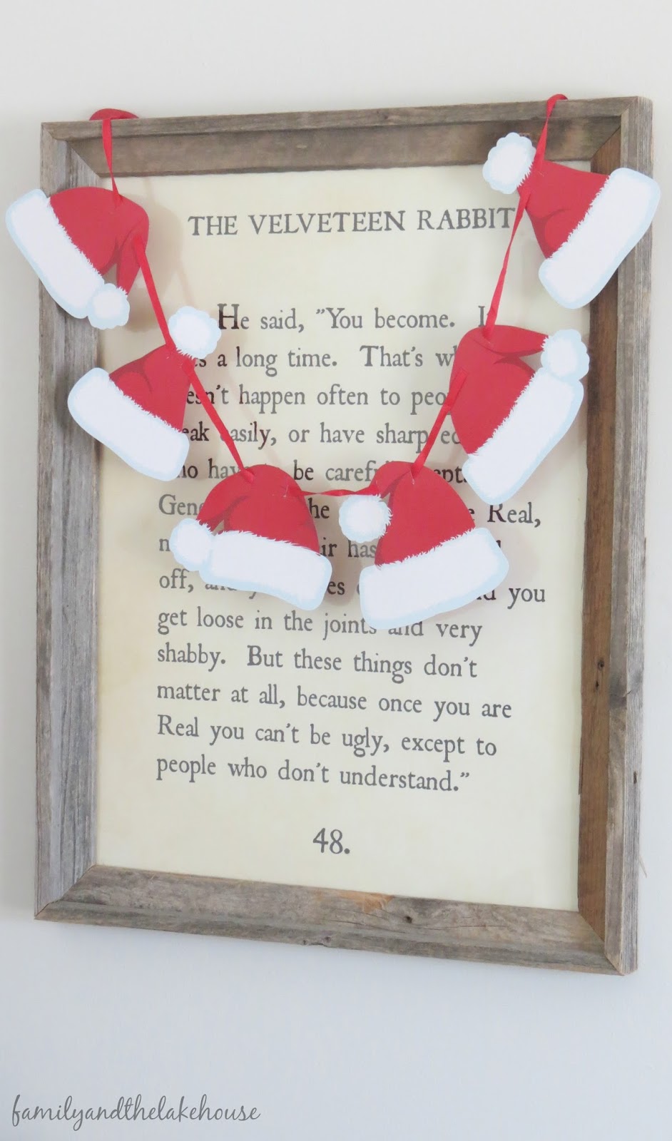 Henry also has a tree in his room, but I didn’t want to move his current “project” that’s taking up the entire room (AKA all-the-things-everywhere), so I’ll just show you this Storybook Quote Art that I made for him with some cute little Santa hats draped over it. Simple, cute, and easy!