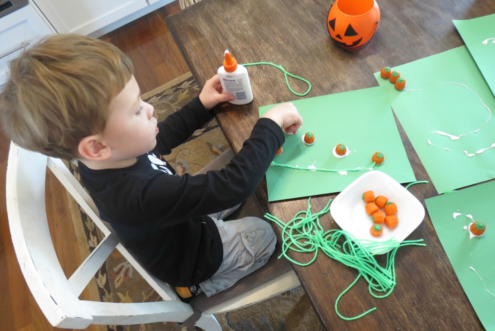 I showed them how to make the “pumpkin patch” and then I began washing the dishes.