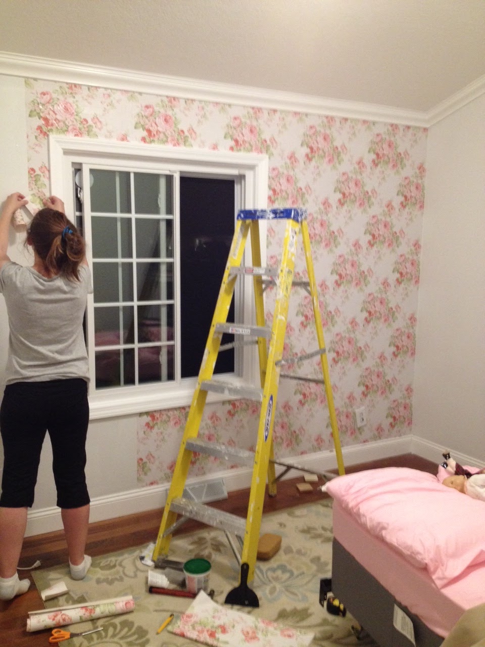 Okay, okay. They could only reach so high. I suppose it was up to me to get the job done andadd those vibrant details (AKA super girly floral wallpaper).