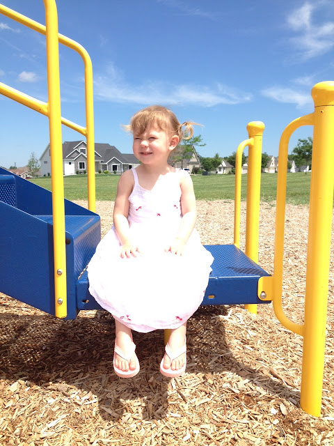 I love everything on this post. I love the lighting shot you have with your new amazing chairs. I love both shots you have of Eliza (the napping one clearly – and the one of her loving her playground fun). I would probably be panicking if they were painting too – so glad it turned out well. Have fun creating the big girl room – Im sure you're going to do an amazing job!