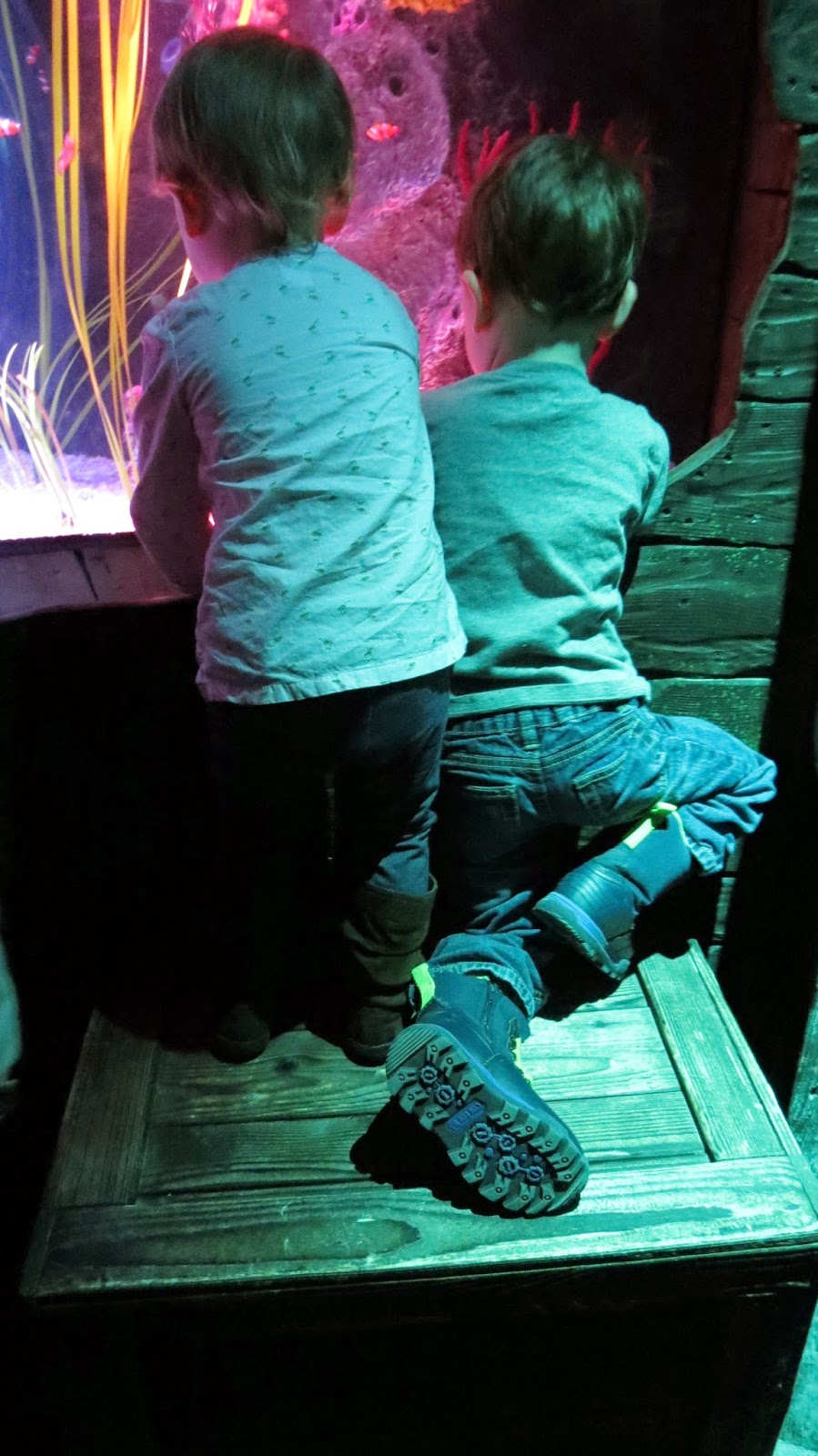 We’ve watched ‘Finding Nemo’ a handful of times since receiving it for Christmas and the kids were excited to find Nemo at the aquarium. The first picture below is when they finally found Nemo. 🙂 It was adorable-ness!