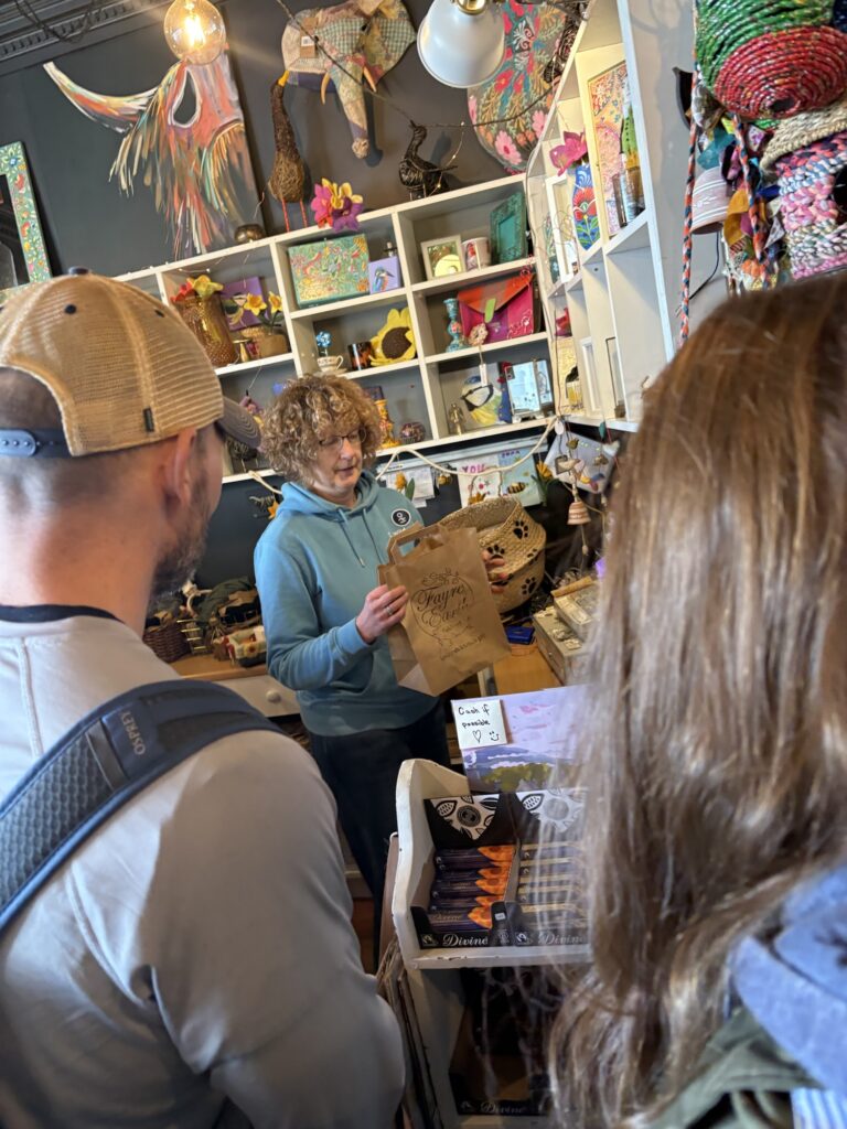 This woman is the owner of the store and we purchased a handmade piece of art made of wool of a picture of Jamie and Claire at the stones.