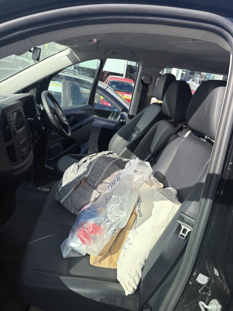 Cleaning up the car to return it before taking the train back to London the next morning.