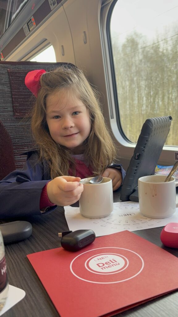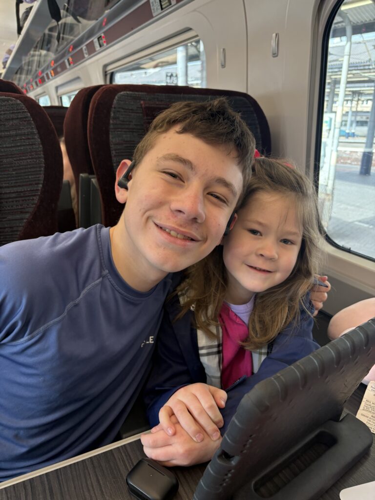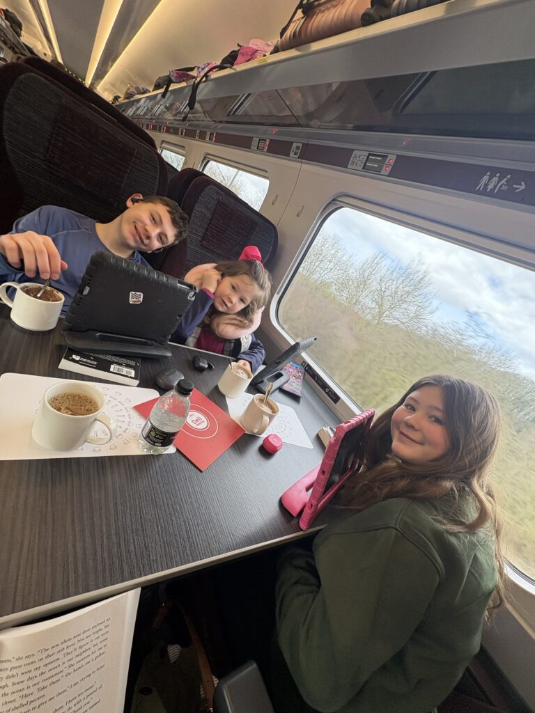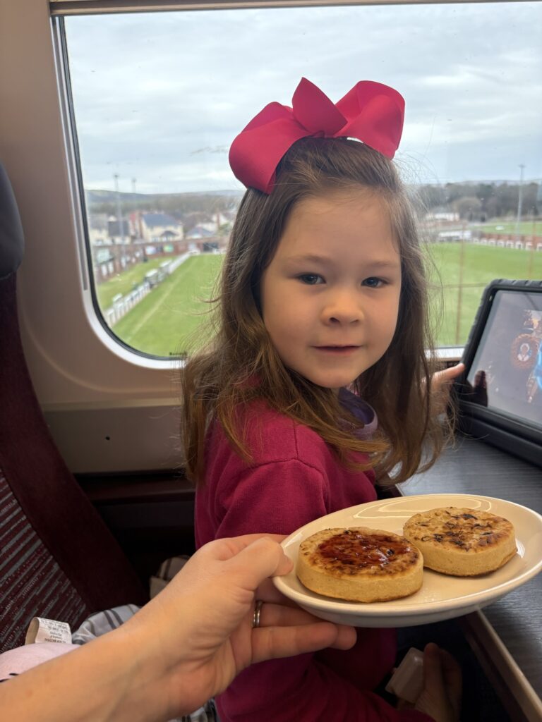 Our train arrived and we were ready to go! We traveled First Class on the LNER and, to us, it was worth it! I’m telling you, this train ride to and from Scotland was a HUGE highlight for me and the kids!