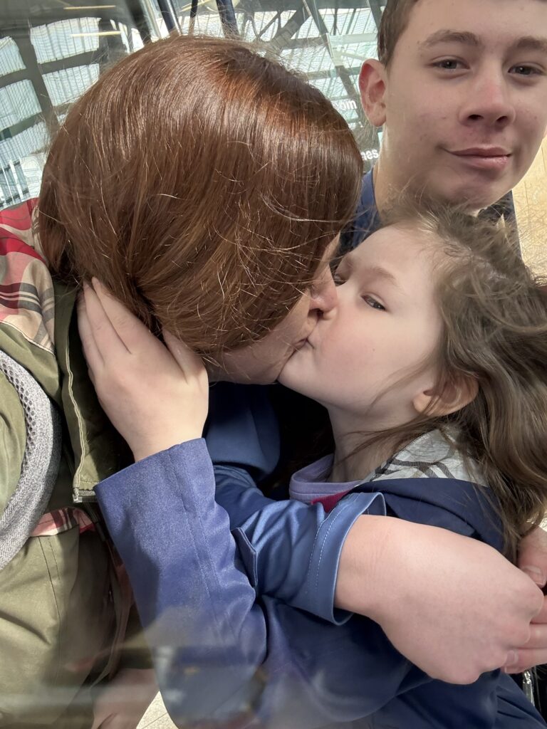 Train station kisses and a silly boy.